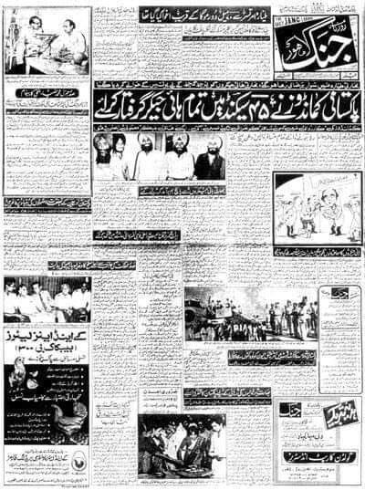 نیچے ’’ جنگ ‘‘ لاہور کا پہلا شمارہ ہے